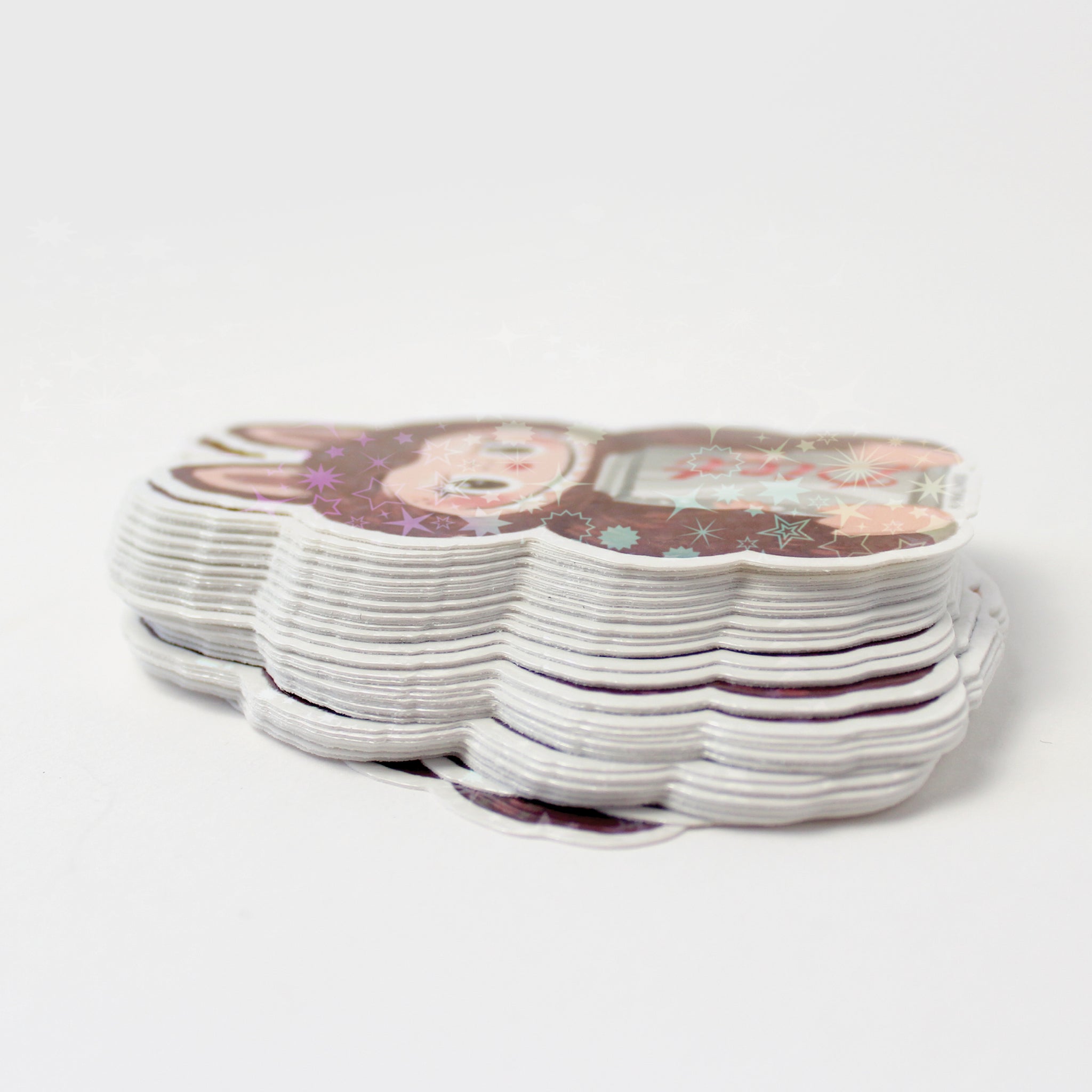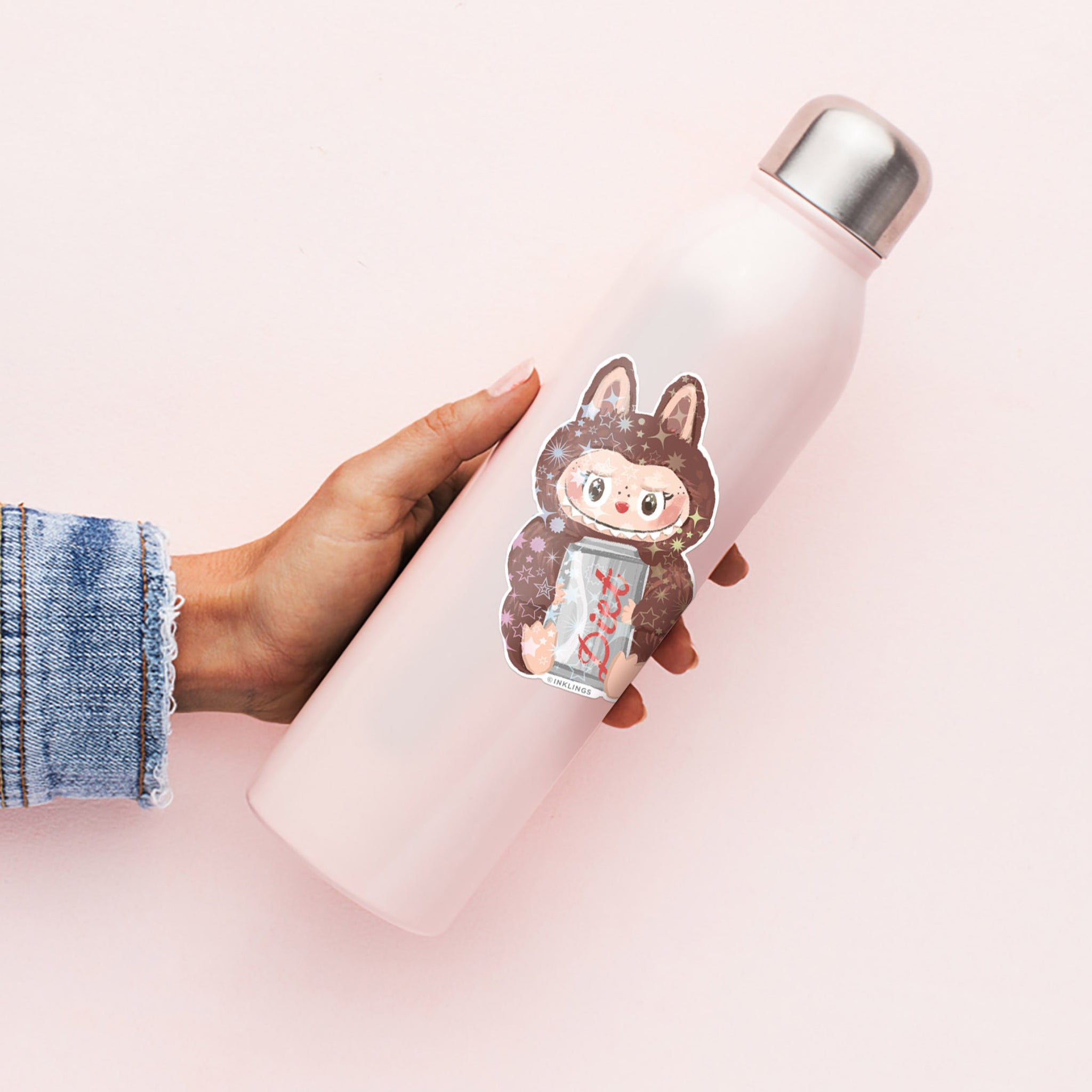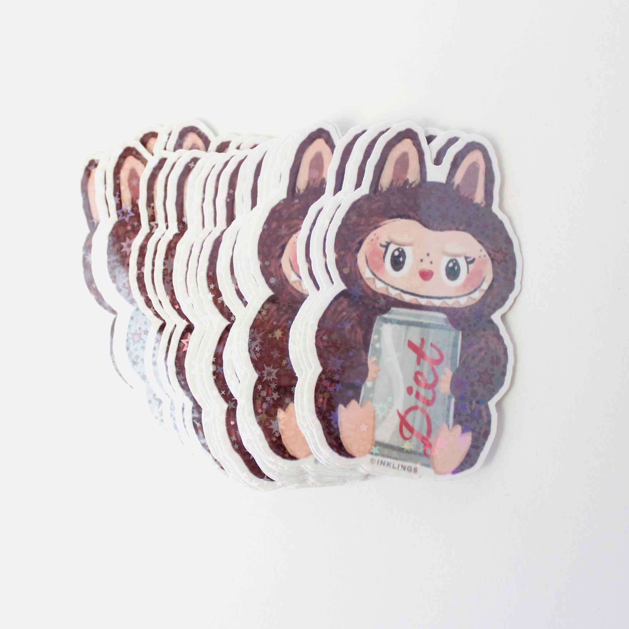 Creepy meets cute with a touch of holographic sparkle! This premium Labubu-inspired vinyl sticker has a luxe holographic glitter finish and are dishwasher-safe, weatherproof and tear-resistant! Peel off the paper backer and adhere to a clean, smooth surface.