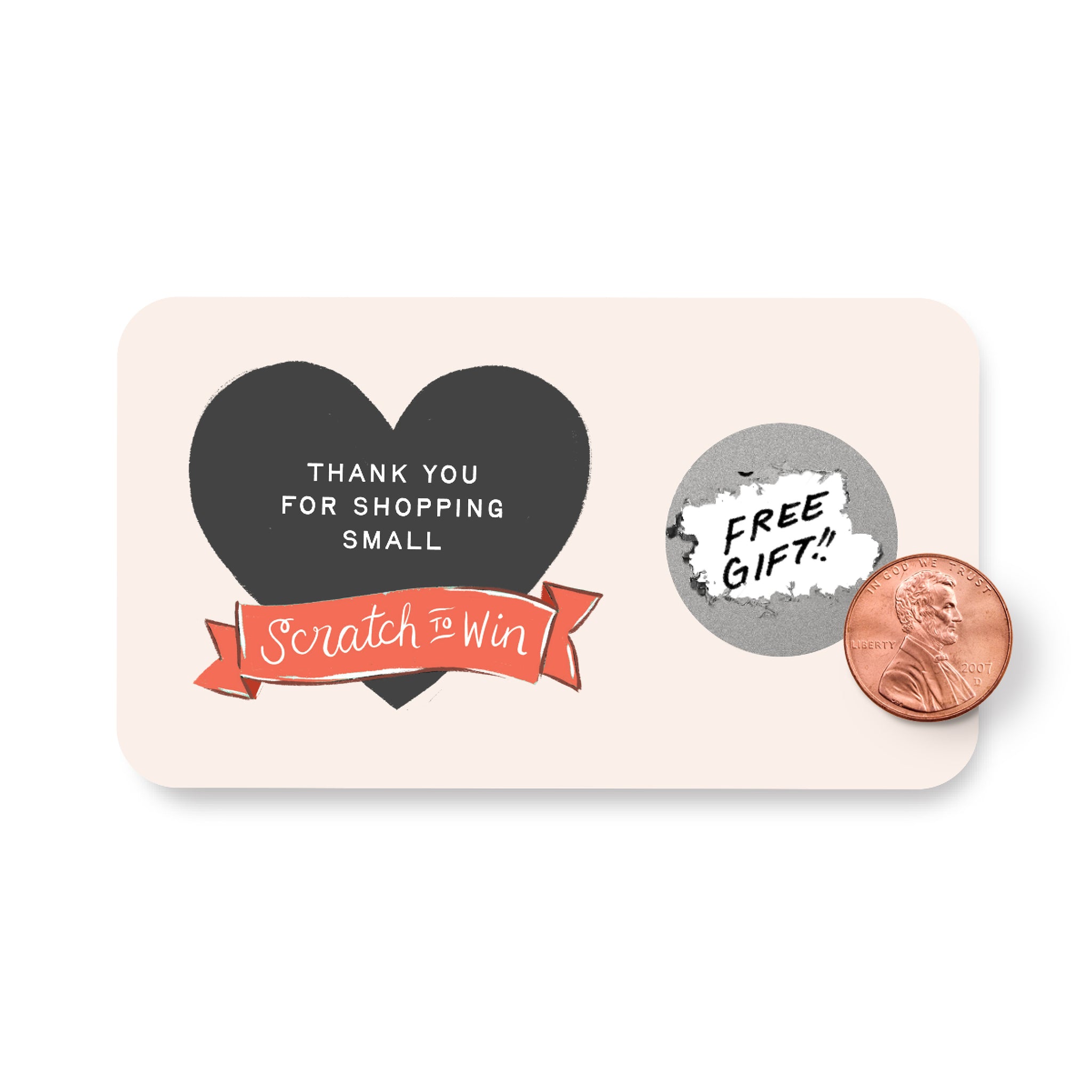 Create your own scratch-off game, or use them as a giveaway with your shop to build loyalty and customer retention! Each set includes 100 blank cards and stickers. Write a message or prize and cover it with a sticker!