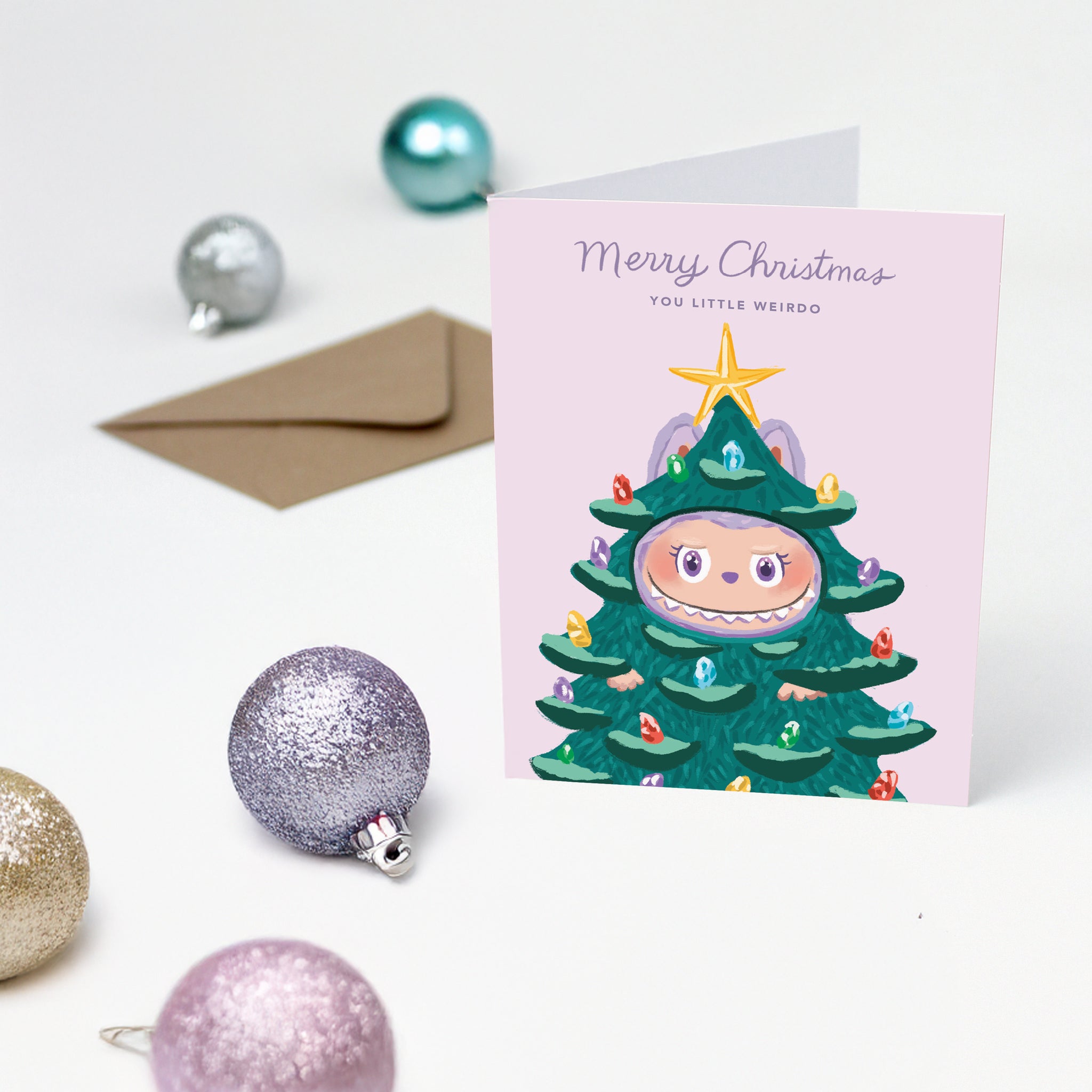 It's the monster that's taking over pop culture! This quirky and adorable Christmas card is especially for the Labubu lovers.