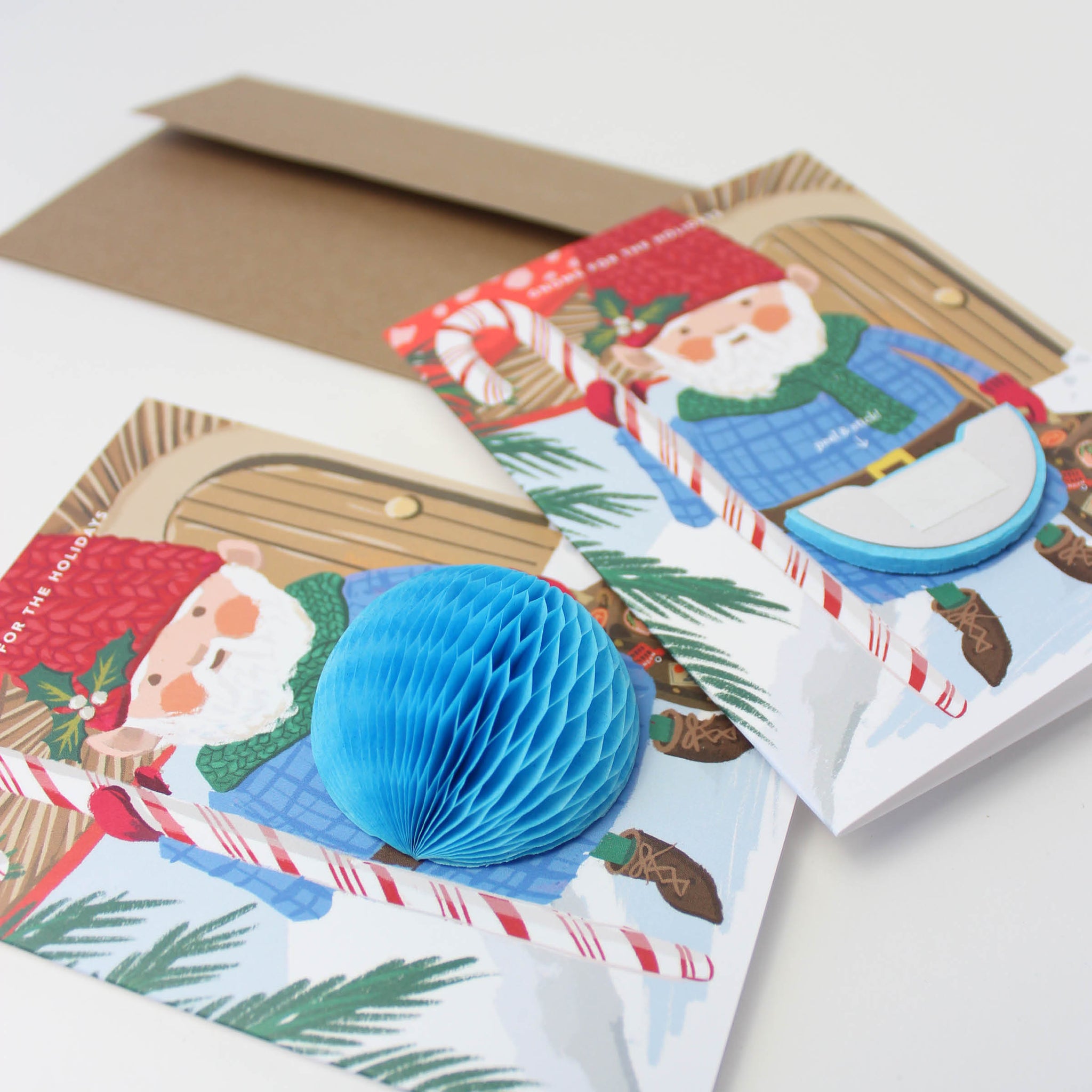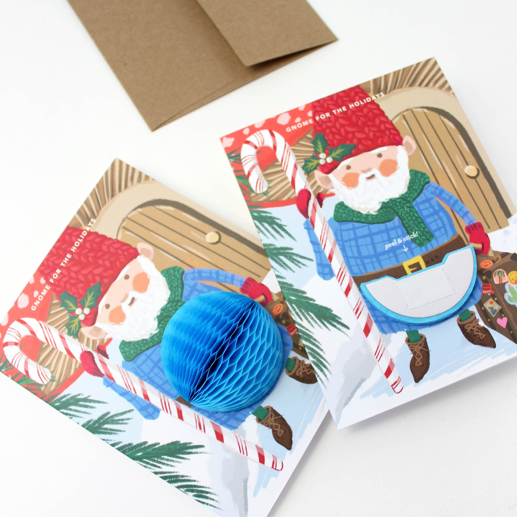 The cutest pop-up Christmas card for the gnome lover in your life! This card is sure to make them smile. Peel back the honeycomb and press down to adhere for a pop-up surprise!
