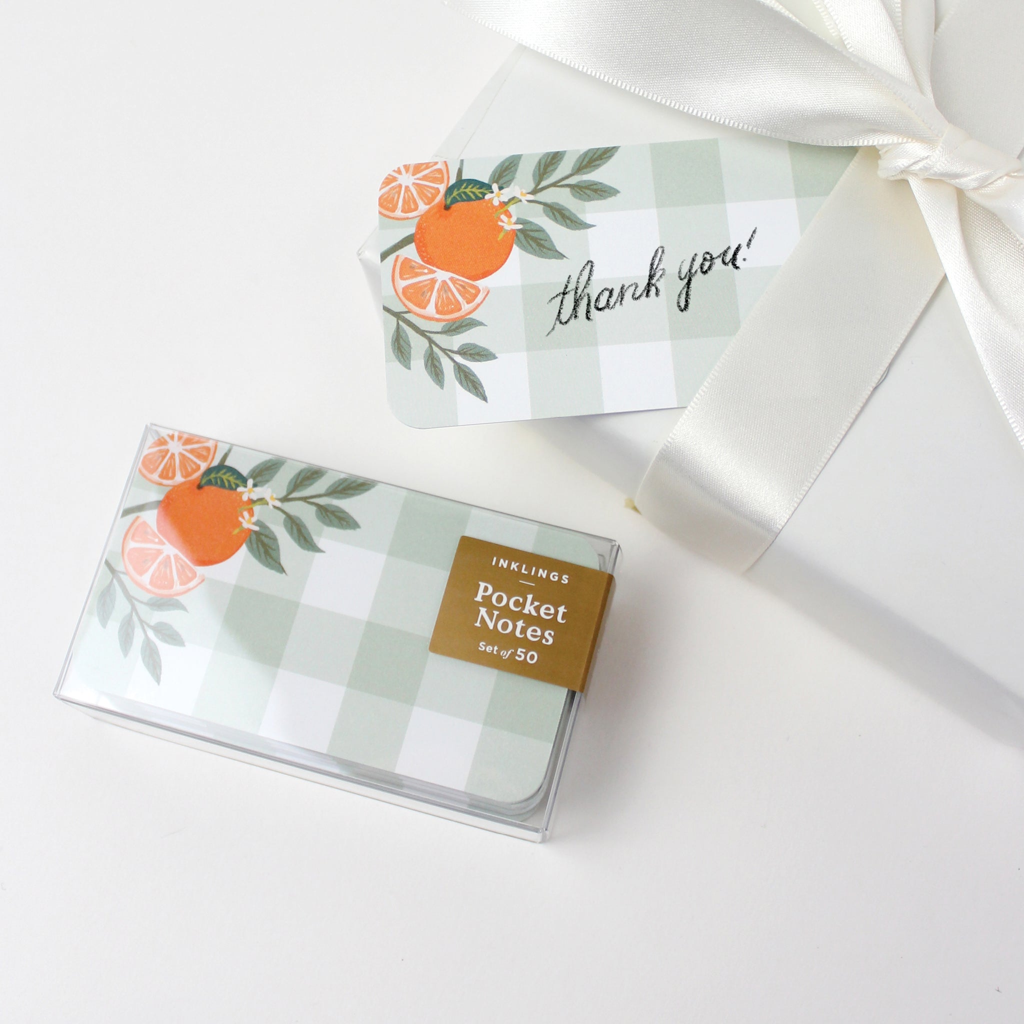 FIFTY adorable cards in a box (same design). Use them for lunchboxes, tiny notes of encouragement, bookmarks, place cards, love notes and more. These would also make an adorable gift for the host. Inklings Pocket Notes™ are printed on a luxurious, ultra-thick card stock with rounded corners and a flood of color printed on the back.